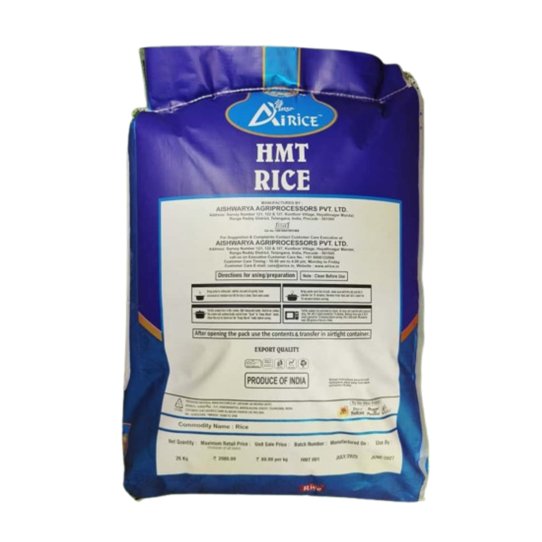 Aishwarya Premium Quality HMT Rice (12 Months Old) is a high-grade, naturally aged rice variety known for its exceptional softness, purity, and improved aroma. Moreover, the 12-month aging process enhances the taste and cooking quality, making the rice fluffier and more delicious compared to freshly milled HMT rice. As a result, this rice becomes an ideal choice for families who want premium-quality grains for their daily meals. Additionally, its mild and pleasant fragrance adds a homely touch to every dish.