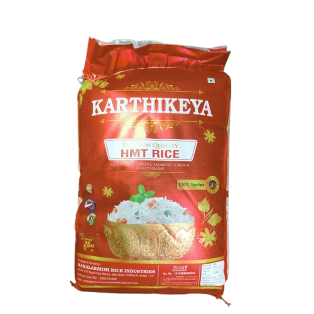 HelloRiceBag.com ensures that you receive only fresh, genuine, and high-quality batches of Karthikeya HMT Rice. Moreover, our hygienic packaging and fast delivery help maintain the rice’s quality until it reaches your kitchen. Consequently, customers choose us for trusted brands, fair pricing, and reliable service across Hyderabad. In addition, we offer a wide range of premium rice options to suit every family’s taste preference.